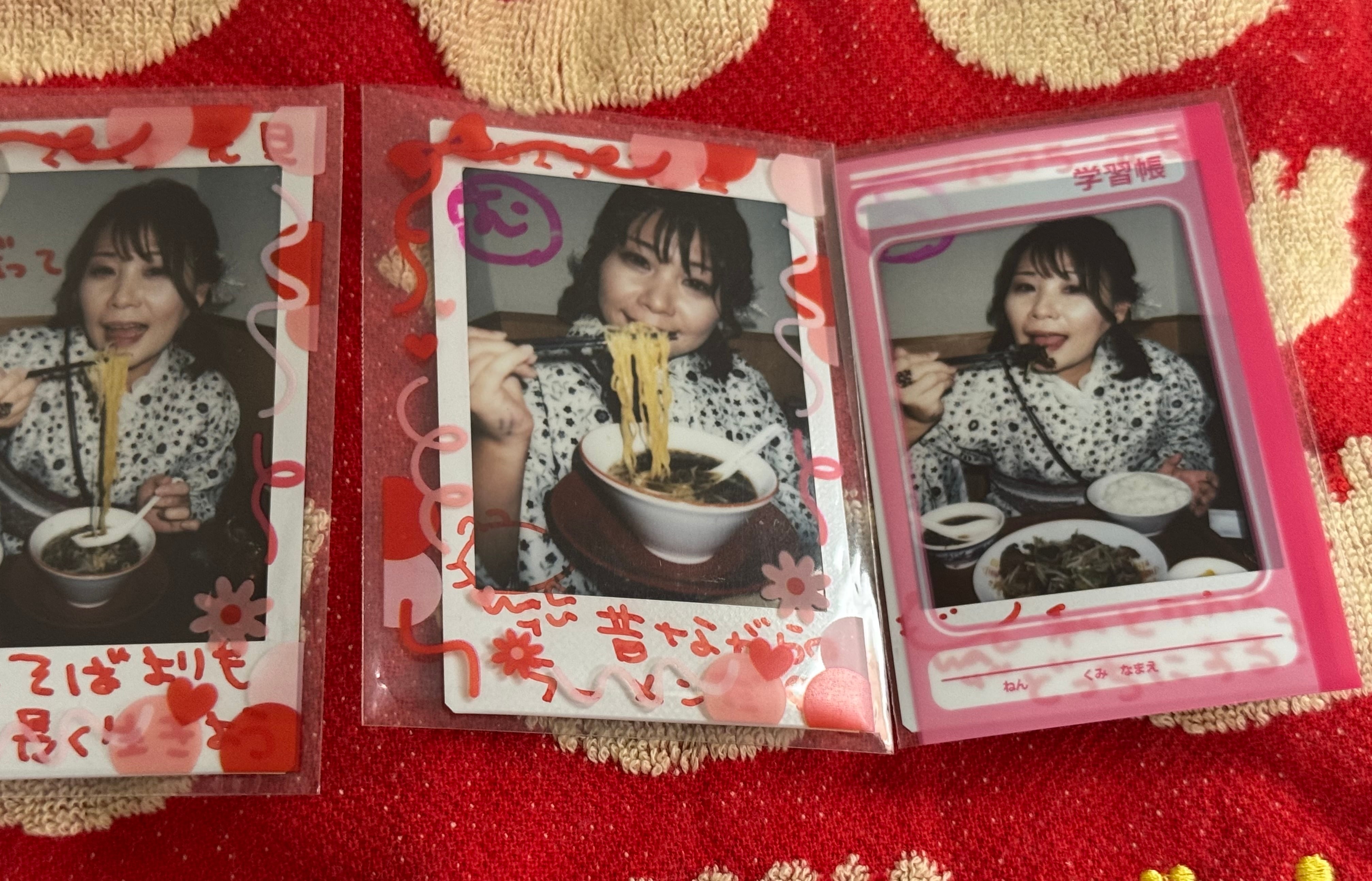 2025年。ご挨拶の着物ランチェキになります。カルタ風になっています。日付、サイン入り